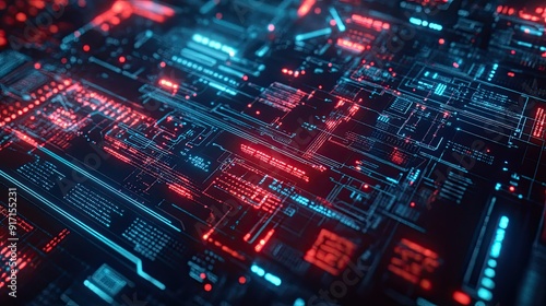 Fototapeta premium Overhead shot of a modern digital interface with abstract tech patterns and...