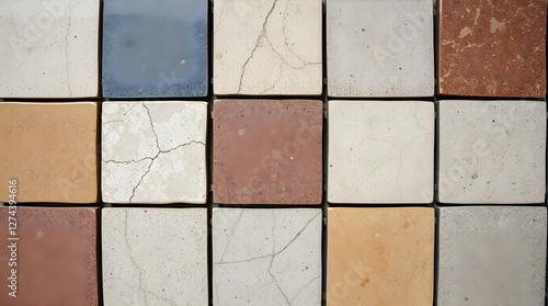 © Iris, Naklejka premium Overhead shot of a mosaic grid displaying diverse stone and ceramic tiles
