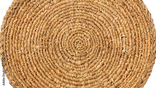 Fototapeta premium Overhead shot of a woven straw dish featuring detailed patterns, made from...