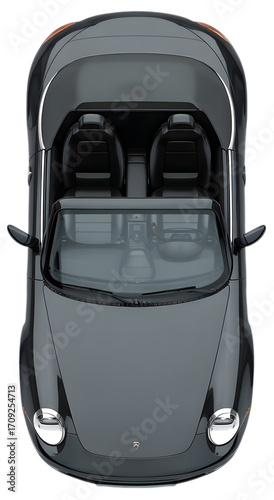 © NaimulHassan, Fototapeta premium Overhead view of a sleek gray convertible car isolated on transparent background
