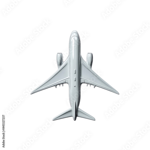 © Phng, Fototapeta premium Overhead View of a White Airplane Model Against a Black Background
