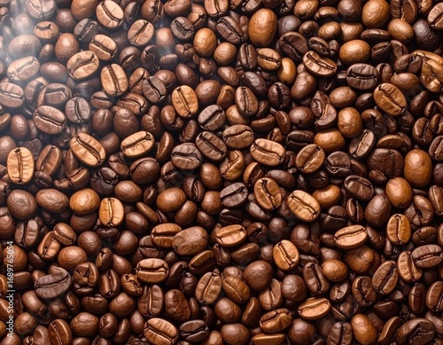 © aziz, Naklejka premium Overhead view of backdrop representing halves of dark brown coffee beans with pleasant scent
