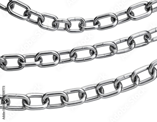 © Stocksource, Obraz premium Overhead view of three metal chains with reflective steel links