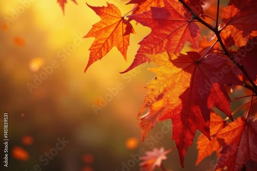 © Phascharaporn, Fototapeta premium Overlapping autumn leaves, vibrant colors, full frame , background, seasonal, red