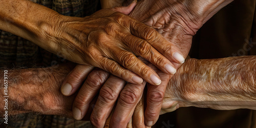 © Lila Patel, Fototapeta premium Overlapping Elderly Hands