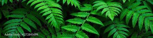 Obraz premium Overlapping fern fronds in a lush arrangement, plants, vegetation, botanic...