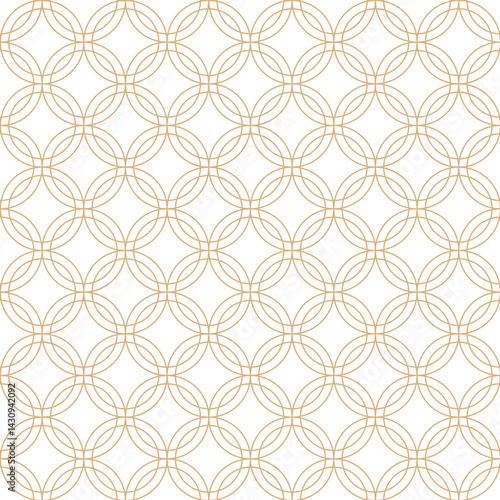 © Olga, Fototapeta premium Overlapping gold line circles seamless pattern. Geometric Art deco chain link design. Luxury chainmail rings background.