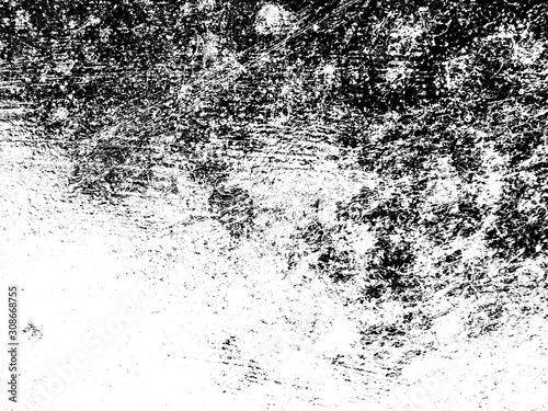 © VYACHESLAV KRAVTSOV, Fototapeta premium Overlay aged grainy messy template. Grunge black and white. Abstract monochrome background. Splashes of dirt on the surface. Vector pattern of dust, dirt, wear and tear