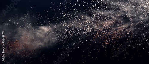 Fototapeta premium Overlay of powder particles, on black background, Generative AI