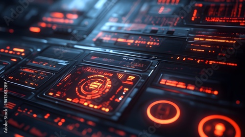 © Thanadech, Obraz premium Overlay of tech HUD elements on a smooth muted surface