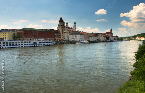 Fototapeta premium Overlooking city center of Passau over the river Donau. Dominant landmarks -...