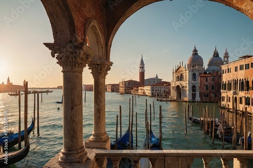 © astiva, Naklejka premium overlooking the Monastery of Venice at sunrise, Italy