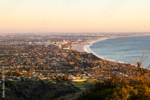 © Adam, Fototapeta premium Overlooking the Santa Monica bay and beach neighborhoods of Los Angeles from above in the Santa Monica Mountains.
