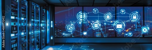 Naklejka premium Overnight monitoring of data center and communication lines, smart city...