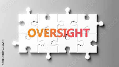 Fototapeta premium Oversight complex like a puzzle - pictured as word oversight on a puzzle pieces to show that oversight is complex and needs cooperating pieces that fit together. ,3d illustration