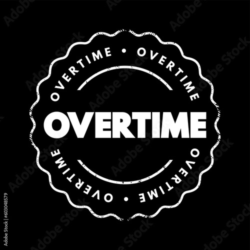 Fototapeta premium Overtime - amount of time someone works beyond normal working hours, text concept stamp