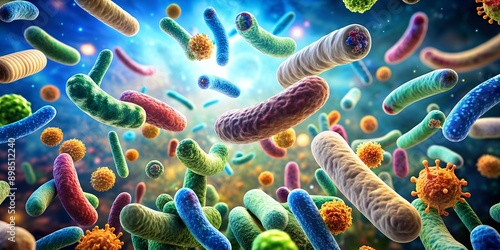© anulak, Fototapeta premium overview of beneficial gut bacteria and microorganisms Creative AI