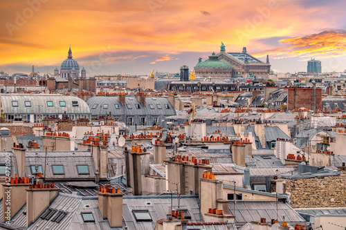 Obraz premium Overview of Paris from Pompidou Center with roof tops.France.