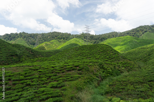 Fototapeta premium Overview of the Cameron Highlands tea plantations in Malaysia. This beautiful...