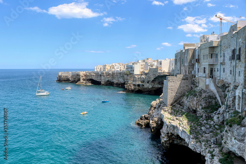 Fototapeta premium Overview of the coast and blue sea of Polignano a Mare, Puglia, Italy