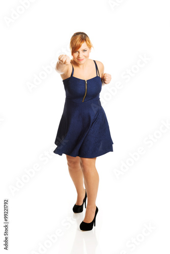 © Piotr Marcinski, Fototapeta premium Overweight woman with her fists up