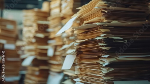 Obraz premium Overwhelmed by Paperwork, Stacks of Documents, Office Clutter