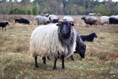 © johannes86, Obraz premium Owca wrzosowata Heidschnucke na Pustaci Lüneburskiej w pobliżu Undeloh i Wilsede w Niemczech