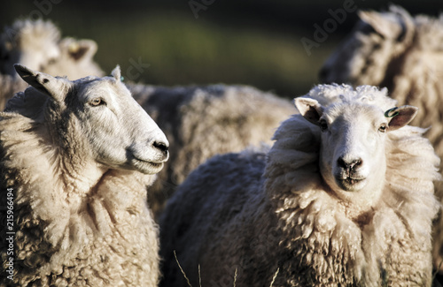 © Longjourneys, Fototapeta premium Owca z pełną wełną gotową do strzyżenia letniego, Nowa Zelandia