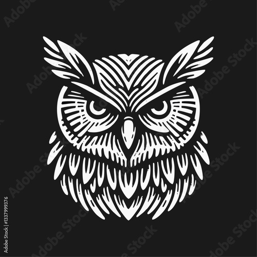 © JimzStd, Fototapeta premium owl bird Engrave vector logo icon design illustration template
