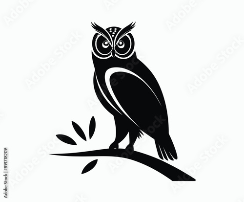 Fototapeta premium Owl bird silhouette editable EPS vector isolated illustration template on a...
