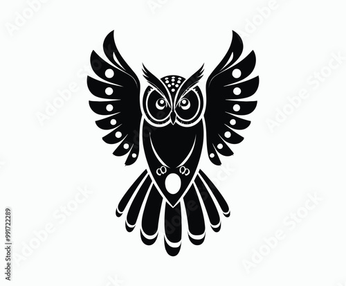 Fototapeta premium Owl bird silhouette editable EPS vector isolated illustration template on a...