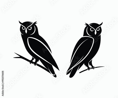Fototapeta premium Owl bird silhouette editable EPS vector isolated illustration template on a...