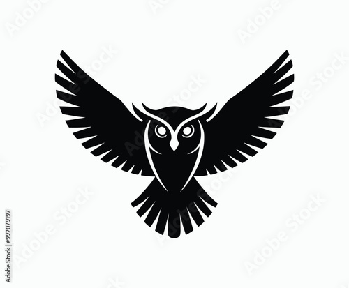 Fototapeta premium Owl bird silhouette editable EPS vector isolated illustration template on a...