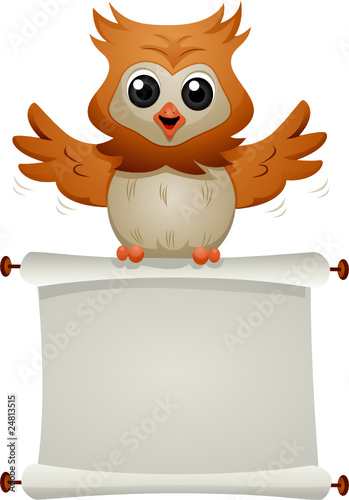 © BNP Design Studio, Obraz premium Owl Carrying Blank Scroll