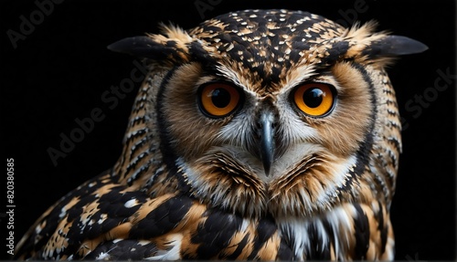 © Arceli, Fototapeta premium owl close up portrait on plain black background from Generative AI
