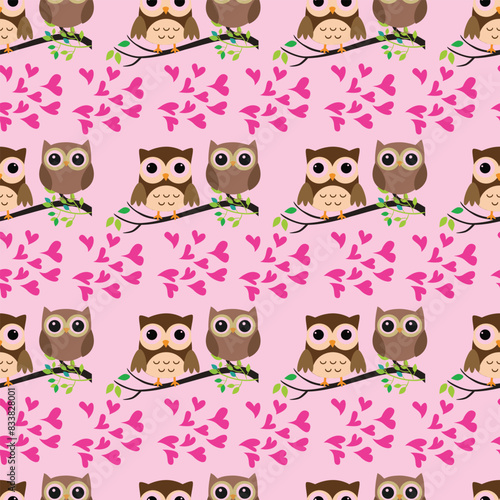 Fototapeta premium Owl Couples Seamless Vector Pattern Design (2)