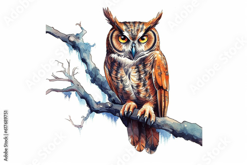 Naklejka premium Owl drawing illustration on a white background