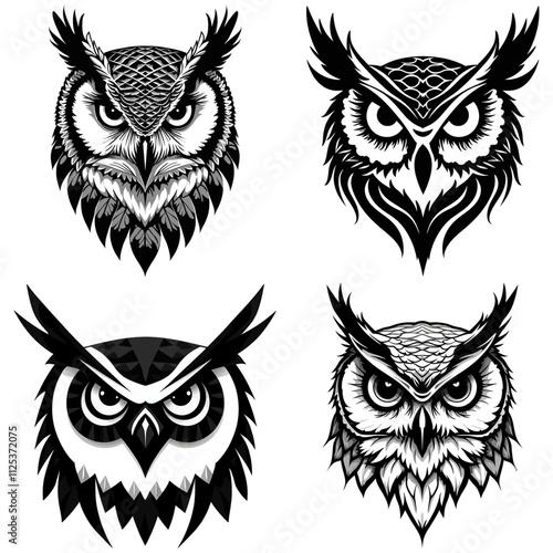 © Taufiq Mehedi, Fototapeta premium Owl face silhouette logo vector illustration set