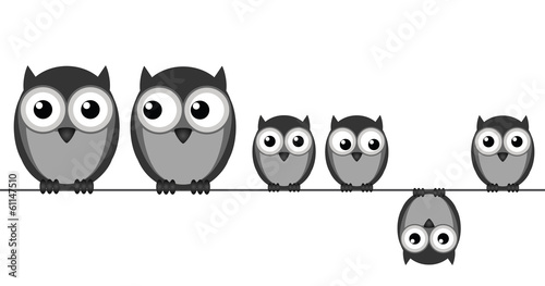 © Barry Barnes, Fototapeta premium Owl family sat in a wire