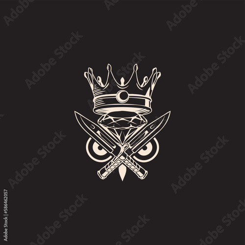 Obraz premium Owl head made of Knives and Diamond, with Crown