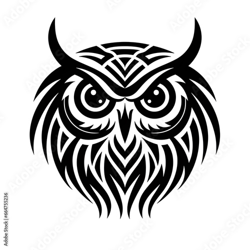 © sugastocks, Fototapeta premium Owl head tribal tattoo design dark art illustration isolated on white background