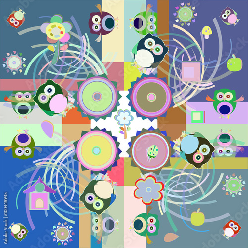 © fotoscool, Obraz premium owl holiday pattern for kids vector