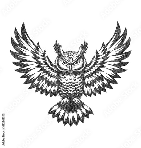 © matsiash, Obraz premium Owl Illustration with Risograph Overprint and Retro Texture