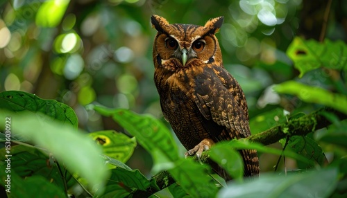 © rin.id, Fototapeta premium Owl in lush green forest