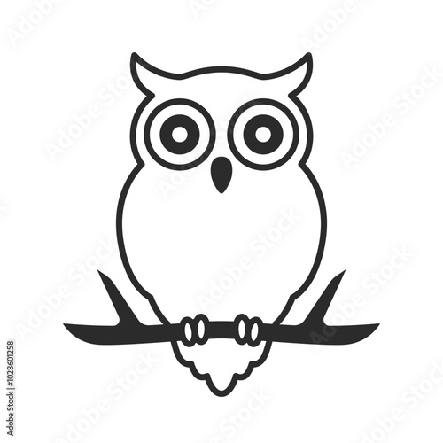 © KaziArtificialStudio, Fototapeta premium Owl line icon. Owl on tree vector thin illustration.