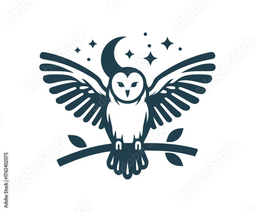 © Ismail, Obraz premium Owl on a branch with moon and stars illustration