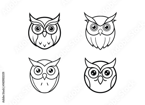 Fototapeta premium Owl outline face vector isolated on white background, icon design, logo...