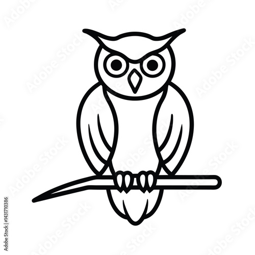 © PuspanjaliRani, Fototapeta premium owl perched branch linear silhouette line art vector