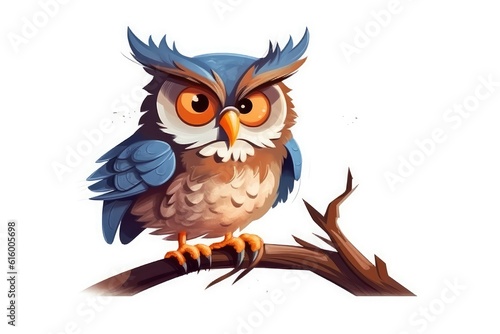 Fototapeta premium Owl perched on a Branch illustration on white background.