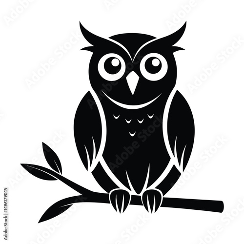 © Rita, Fototapeta premium Owl Perched on a Branch Vector Silhouette on White Background